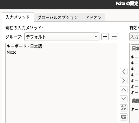 初回起動するとダイアログにオーバーレイ表示で "Fcitx5 を実行する" ボタンがでる。親切。- 「先頭にキーボードレイアウト、2番目に変換メソッド(Mozc)がある、状態にする」必要がある。