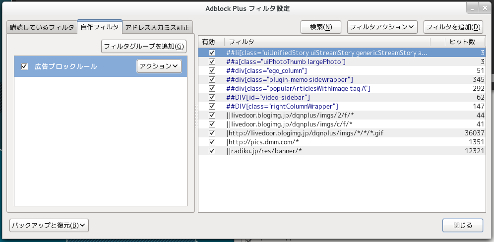 Firefoxのプラグイン、Adblock Plus 2.2.1 を使っています。